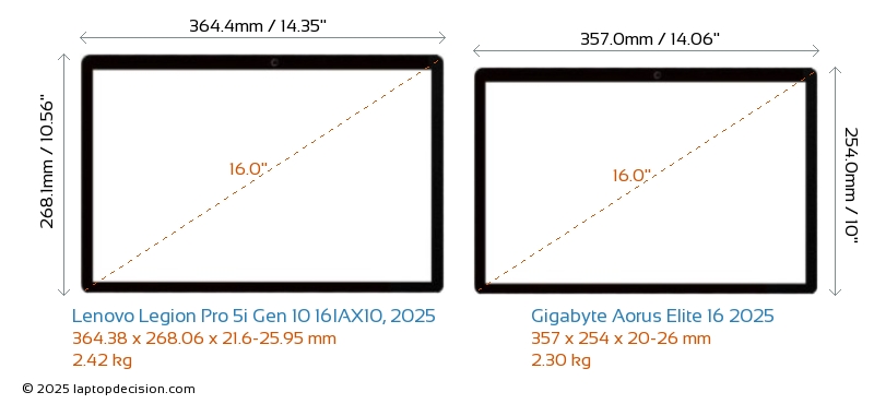 HDMIAmbos Legion Pro 5i Gen 10 16IAX10, 2025 y Aorus Elite 16 2025 cuentan con un puerto HDMI (1x HDMI 2.1) para conectar a monitores externos.