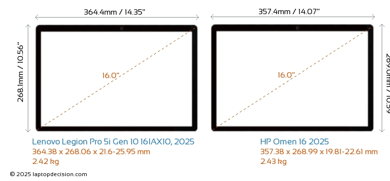 HDMIAmbos Legion Pro 5i Gen 10 16IAX10, 2025 y Omen 16 2025 cuentan con un puerto HDMI (1x HDMI 2.1) para conectar a monitores externos.