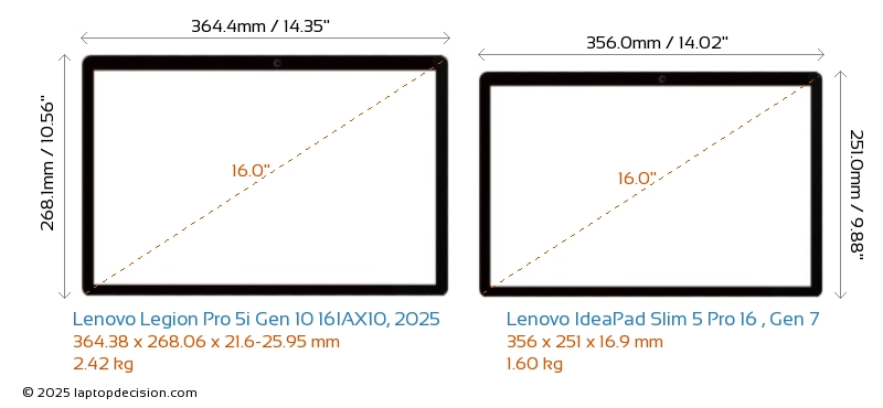 Thunderbolt Legion Pro 5i Gen 10 16IAX10, 2025 está equipado con un puerto Thunderbolt 4. IdeaPad Slim 5 Pro 16 , Gen 7 no tiene puerto Thunderbolt.