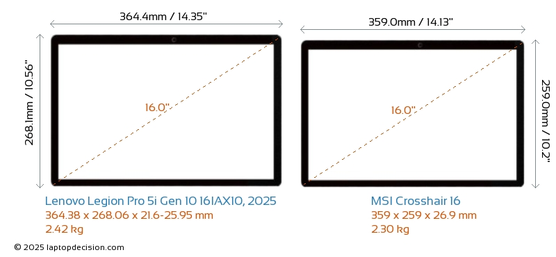 HDMIAmbos Legion Pro 5i Gen 10 16IAX10, 2025 y Crosshair 16 cuentan con un puerto HDMI (1x HDMI 2.1) para conectar a monitores externos.