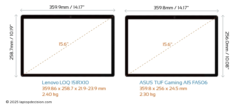 USBAmbos LOQ 15IRX10 y TUF Gaming A15 FA506 cuentan con 3x USB 3.2 puertos USB-A.Ambos LOQ 15IRX10 y TUF Gaming A15 FA506 cuentan con 1x USB 3.2 puertos USB Type-C.
