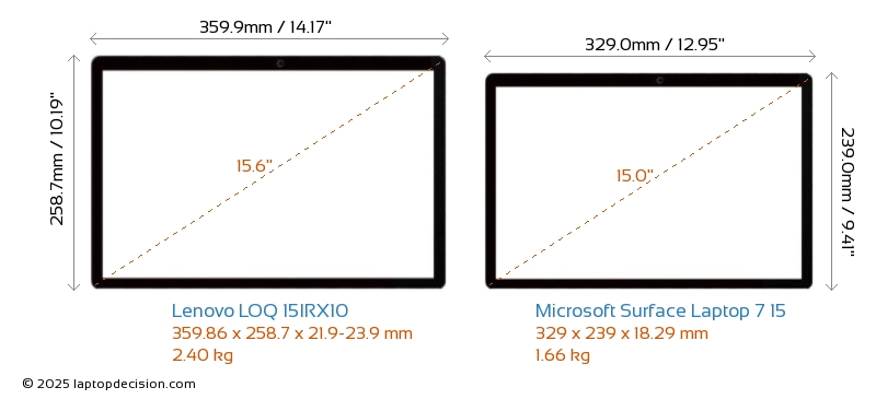 Thunderbolt Surface Laptop 7 15 está equipado con un puerto Thunderbolt 4. LOQ 15IRX10 no tiene puerto Thunderbolt.