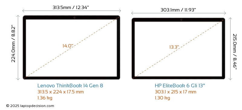 USBAmbos ThinkBook 14 Gen 8 y EliteBook 6 G1i 13" cuentan con 2x USB 3.2 puertos USB-A.Ambos ThinkBook 14 Gen 8 y EliteBook 6 G1i 13" cuentan con 2x USB 4.0 puertos USB Type-C.