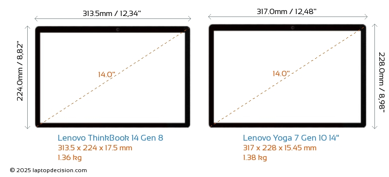 Thunderbolt ThinkBook 14 Gen 8 está equipado con un puerto Thunderbolt 4. Yoga 7 Gen 10 14" no tiene puerto Thunderbolt.