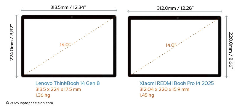 HDMIAmbos ThinkBook 14 Gen 8 y REDMI Book Pro 14 2025 cuentan con un puerto HDMI (1x HDMI 2.1) para conectar a monitores externos.