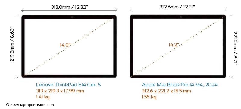 HDMIAmbos ThinkPad E14 Gen 5 y MacBook Pro 14 M4, 2024 cuentan con un puerto HDMI (1x HDMI 2.1) para conectar a monitores externos.