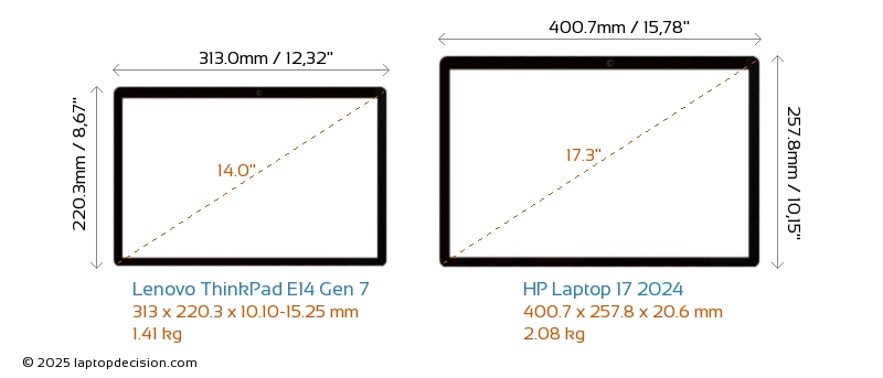 Thunderbolt ThinkPad E14 Gen 7 está equipado con un puerto Thunderbolt 4. Laptop 17 2024 no tiene puerto Thunderbolt.