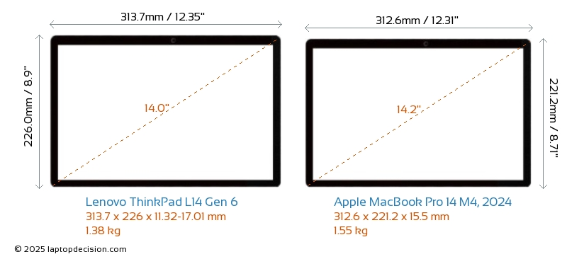 HDMIAmbos ThinkPad L14 Gen 6 y MacBook Pro 14 M4, 2024 cuentan con un puerto HDMI (1x HDMI 2.1) para conectar a monitores externos.