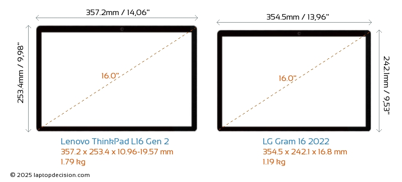 HDMIAmbos ThinkPad L16 Gen 2 y Gram 16 2022 cuentan con un puerto HDMI. ThinkPad L16 Gen 2 ofrece 1x HDMI 2.1, mientras que Gram 16 2022 ofrece 1x HDMI 2.0.