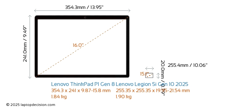 Thunderbolt ThinkPad P1 Gen 8 está equipado con un puerto Thunderbolt 5. Legion 5i Gen 10 2025 no tiene puerto Thunderbolt.