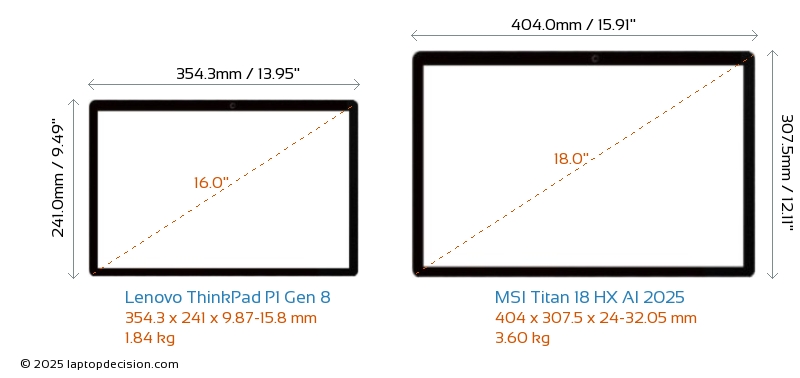HDMIAmbos ThinkPad P1 Gen 8 y Titan 18 HX AI 2025 cuentan con un puerto HDMI (1x HDMI 2.1) para conectar a monitores externos.