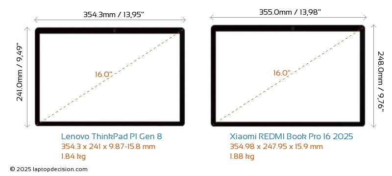 HDMIAmbos ThinkPad P1 Gen 8 y REDMI Book Pro 16 2025 cuentan con un puerto HDMI (1x HDMI 2.1) para conectar a monitores externos.