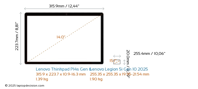 Thunderbolt Thinkpad P14s Gen 6 está equipado con un puerto Thunderbolt 4. Legion 5i Gen 10 2025 no tiene puerto Thunderbolt.