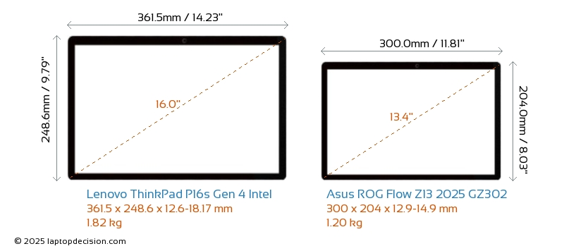 HDMIAmbos ThinkPad P16s Gen 4 Intel y ROG Flow Z13 2025 GZ302 cuentan con un puerto HDMI (1x HDMI 2.1) para conectar a monitores externos.