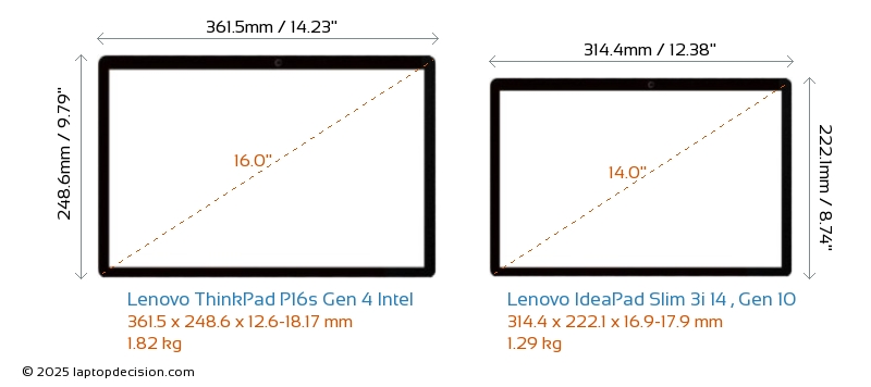 HDMIAmbos ThinkPad P16s Gen 4 Intel y IdeaPad Slim 3i 14 , Gen 10 cuentan con un puerto HDMI. ThinkPad P16s Gen 4 Intel ofrece 1x HDMI 2.1, mientras que IdeaPad Slim 3i 14 , Gen 10 ofrece 1x HDMI 1.4.