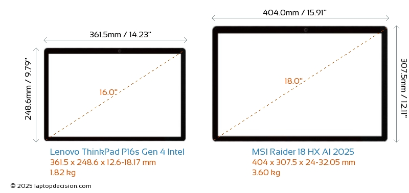 HDMIAmbos ThinkPad P16s Gen 4 Intel y Raider 18 HX AI 2025 cuentan con un puerto HDMI (1x HDMI 2.1) para conectar a monitores externos.