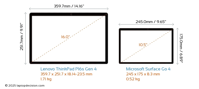 HDMI ThinkPad P16s Gen 4 cuenta con un puerto HDMI (1x HDMI 2.1) para conectar a monitores externos. Surface Go 4 no tiene puerto HDMI.