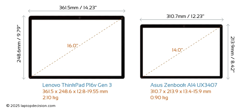 HDMIAmbos ThinkPad P16v Gen 3 y Zenbook A14 UX3407 cuentan con un puerto HDMI (1x HDMI 2.1) para conectar a monitores externos.