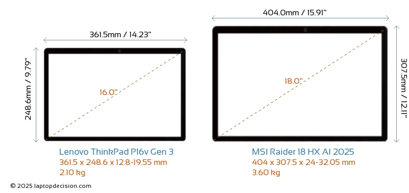 HDMIAmbos ThinkPad P16v Gen 3 y Raider 18 HX AI 2025 cuentan con un puerto HDMI (1x HDMI 2.1) para conectar a monitores externos.
