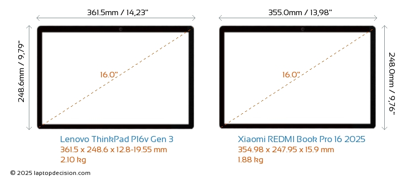 HDMIAmbos ThinkPad P16v Gen 3 y REDMI Book Pro 16 2025 cuentan con un puerto HDMI (1x HDMI 2.1) para conectar a monitores externos.