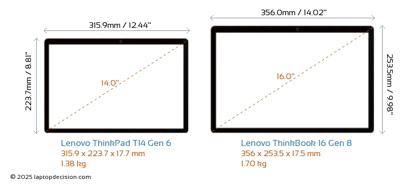 USBAmbos ThinkPad T14 Gen 6 y ThinkBook 16 Gen 8 cuentan con 2x USB 3.2 puertos USB-A.Ambos ThinkPad T14 Gen 6 y ThinkBook 16 Gen 8 cuentan con 2x USB 4.0 puertos USB Type-C.