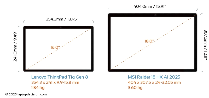 HDMIAmbos ThinkPad T1g Gen 8 y Raider 18 HX AI 2025 cuentan con un puerto HDMI (1x HDMI 2.1) para conectar a monitores externos.