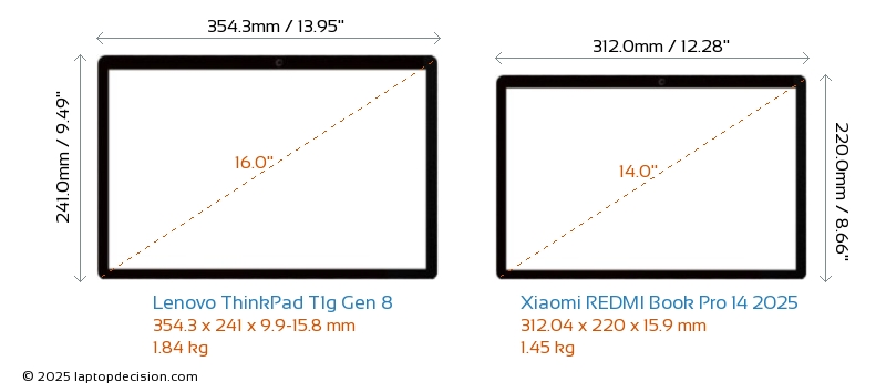 HDMIAmbos ThinkPad T1g Gen 8 y REDMI Book Pro 14 2025 cuentan con un puerto HDMI (1x HDMI 2.1) para conectar a monitores externos.