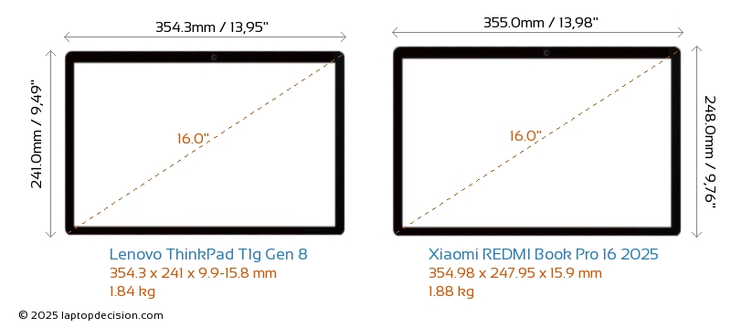 HDMIAmbos ThinkPad T1g Gen 8 y REDMI Book Pro 16 2025 cuentan con un puerto HDMI (1x HDMI 2.1) para conectar a monitores externos.