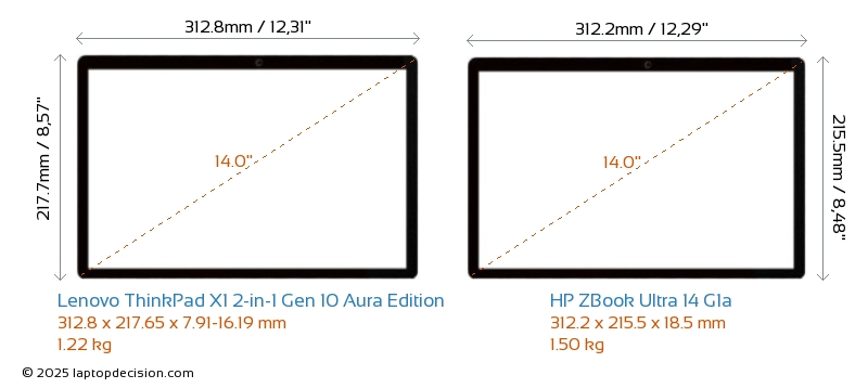 USBAmbos ThinkPad X1 2-in-1 Gen 10 Aura Edition y ZBook Ultra 14 G1a tienen puertos USB-A. ThinkPad X1 2-in-1 Gen 10 Aura Edition tiene 2x USB 3.2 puertos USB-A, mientras que ZBook Ultra 14 G1a tiene 1x USB 3.2 puertos USB-A.Ambos ThinkPad X1 2-in-1 Gen 10 Aura Edition y ZBook Ultra 14 G1a tienen puertos USB Type-C. ThinkPad X1 2-in-1 Gen 10 Aura Edition tiene 2x USB 4.0 puertos USB Type-C, mientras que ZBook Ultra 14 G1a tiene 3x USB 4.0 puertos USB Type-C.