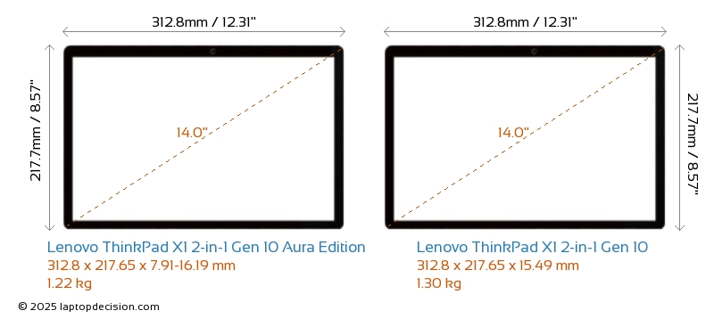 USBAmbos ThinkPad X1 2-in-1 Gen 10 Aura Edition y ThinkPad X1 2-in-1 Gen 10 cuentan con 2x USB 3.2 puertos USB-A.Ambos ThinkPad X1 2-in-1 Gen 10 Aura Edition y ThinkPad X1 2-in-1 Gen 10 cuentan con 2x USB 4.0 puertos USB Type-C.