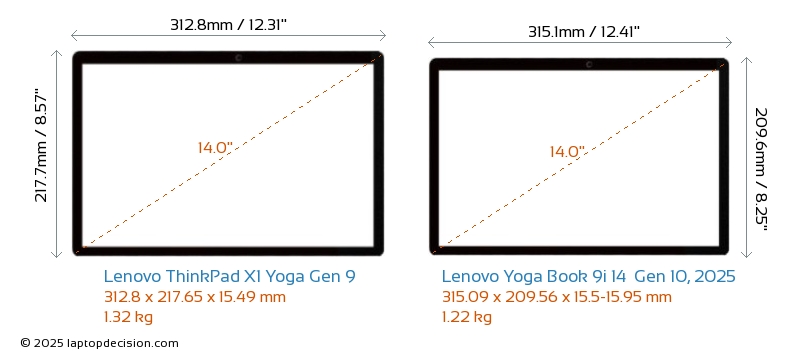 HDMI ThinkPad X1 Yoga Gen 9 cuenta con un puerto HDMI (1x HDMI 2.1) para conectar a monitores externos. Yoga Book 9i 14 Gen 10, 2025 no tiene puerto HDMI.
