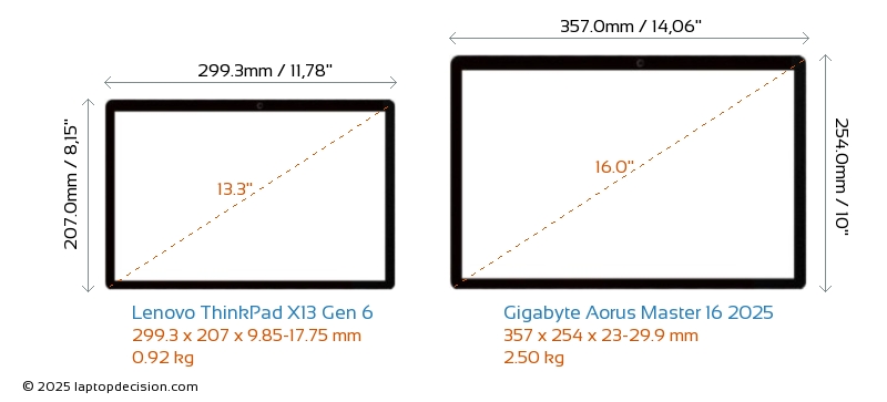 HDMIAmbos ThinkPad X13 Gen 6 y Aorus Master 16 2025 cuentan con un puerto HDMI (1x HDMI 2.1) para conectar a monitores externos.