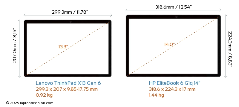 USBAmbos ThinkPad X13 Gen 6 y EliteBook 6 G1q 14" cuentan con 2x USB 3.2 puertos USB-A.Ambos ThinkPad X13 Gen 6 y EliteBook 6 G1q 14" cuentan con 2x USB 4.0 puertos USB Type-C.