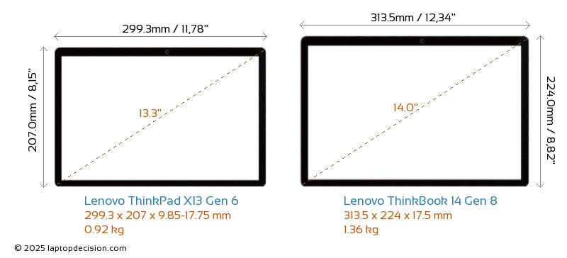 USBAmbos ThinkPad X13 Gen 6 y ThinkBook 14 Gen 8 cuentan con 2x USB 3.2 puertos USB-A.Ambos ThinkPad X13 Gen 6 y ThinkBook 14 Gen 8 cuentan con 2x USB 4.0 puertos USB Type-C.