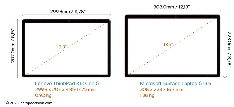 ThunderboltAmbos ThinkPad X13 Gen 6 y Surface Laptop 6 13.5 están equipados con puertos Thunderbolt 4.