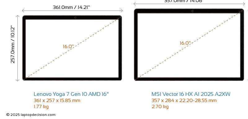 HDMIAmbos Yoga 7 Gen 10 AMD 16" y Vector 16 HX AI 2025 A2XW cuentan con un puerto HDMI. Yoga 7 Gen 10 AMD 16" ofrece 1x HDMI 1.4, mientras que Vector 16 HX AI 2025 A2XW ofrece 1x HDMI 2.1.