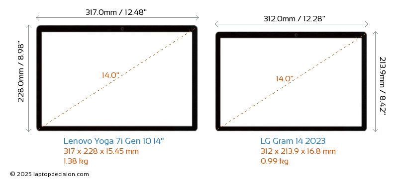 HDMIAmbos Yoga 7i Gen 10 14" y Gram 14 2023 cuentan con un puerto HDMI. Yoga 7i Gen 10 14" ofrece 1x HDMI 1.4, mientras que Gram 14 2023 ofrece 1x HDMI 2.0.