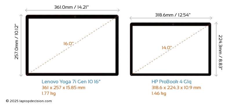 USBAmbos Yoga 7i Gen 10 16" y ProBook 4 G1q tienen puertos USB-A. Yoga 7i Gen 10 16" tiene 1x USB 3.2 puertos USB-A, mientras que ProBook 4 G1q tiene 2x USB 3.2 puertos USB-A.Ambos Yoga 7i Gen 10 16" y ProBook 4 G1q tienen puertos USB Type-C. Yoga 7i Gen 10 16" tiene 2x USB 4.0 puertos USB Type-C, mientras que ProBook 4 G1q tiene 2x USB 3.2 puertos USB Type-C.
