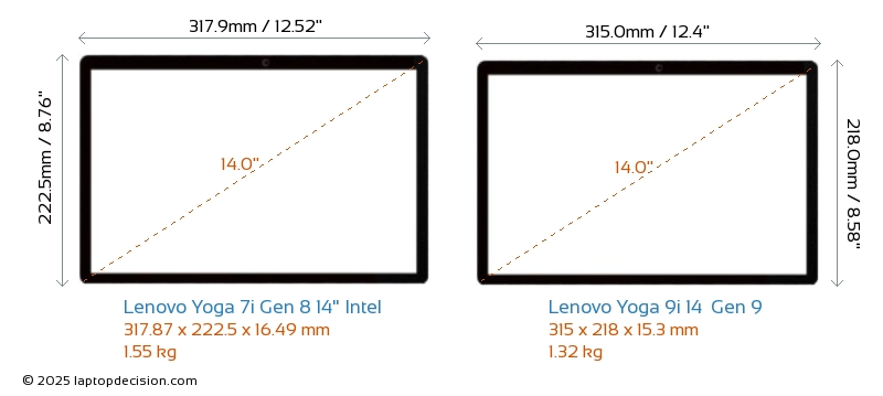 HDMI Yoga 7i Gen 8 14" Intel cuenta con un puerto HDMI (1x HDMI 1.4) para conectar a monitores externos. Yoga 9i 14 Gen 9 no tiene puerto HDMI.