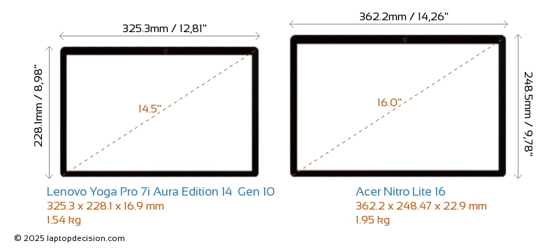 USBAmbos Yoga Pro 7i Aura Edition 14 Gen 10 y Nitro Lite 16 cuentan con 2x USB 3.2 puertos USB-A.Ambos Yoga Pro 7i Aura Edition 14 Gen 10 y Nitro Lite 16 tienen puertos USB Type-C. Yoga Pro 7i Aura Edition 14 Gen 10 tiene 2x USB 4.0 puertos USB Type-C, mientras que Nitro Lite 16 tiene 1x USB 4.0 puertos USB Type-C.