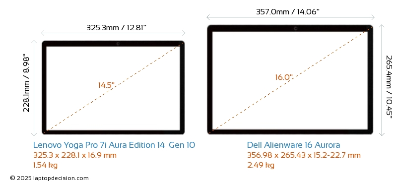 USBAmbos Yoga Pro 7i Aura Edition 14 Gen 10 y Alienware 16 Aurora cuentan con 2x USB 3.2 puertos USB-A.Ambos Yoga Pro 7i Aura Edition 14 Gen 10 y Alienware 16 Aurora cuentan con 2x USB 4.0 puertos USB Type-C.