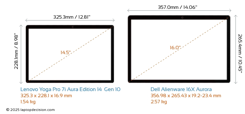 USBAmbos Yoga Pro 7i Aura Edition 14 Gen 10 y Alienware 16X Aurora cuentan con 2x USB 3.2 puertos USB-A.Ambos Yoga Pro 7i Aura Edition 14 Gen 10 y Alienware 16X Aurora cuentan con 2x USB 4.0 puertos USB Type-C.
