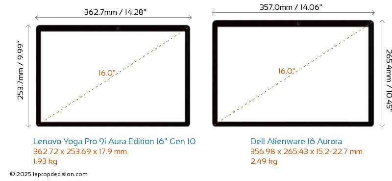 Thunderbolt Yoga Pro 9i Aura Edition 16" Gen 10 está equipado con un puerto Thunderbolt 4. Alienware 16 Aurora no tiene puerto Thunderbolt.