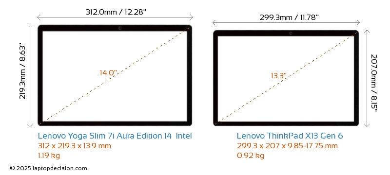 HDMIAmbos Yoga Slim 7i Aura Edition 14 Intel y ThinkPad X13 Gen 6 cuentan con un puerto HDMI (1x HDMI 2.1) para conectar a monitores externos.