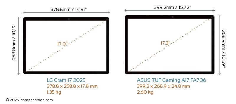 Wifi Gram 17 2025 cuenta con un estándar de Wi-Fi más avanzado v7, proporcionando conexiones inalámbricas más rápidas y fiables en comparación con TUF Gaming A17 FA706 (v6).