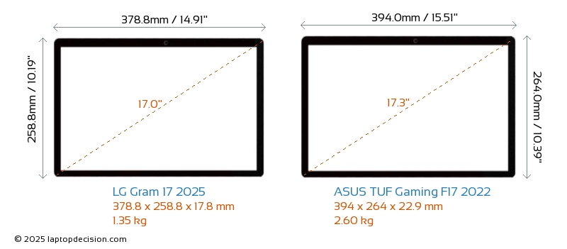 Thunderbolt Gram 17 2025 está equipado con un puerto Thunderbolt 4. TUF Gaming F17 2022 no tiene puerto Thunderbolt.
