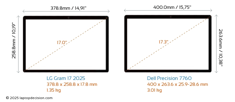 HDMIAmbos Gram 17 2025 y Precision 7760 cuentan con un puerto HDMI (1x HDMI 2.1) para conectar a monitores externos.