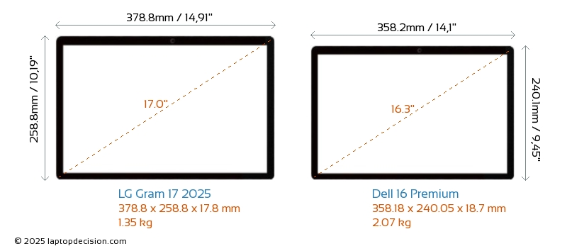 HDMI Gram 17 2025 cuenta con un puerto HDMI (1x HDMI 2.1) para conectar a monitores externos. 16 Premium no tiene puerto HDMI.
