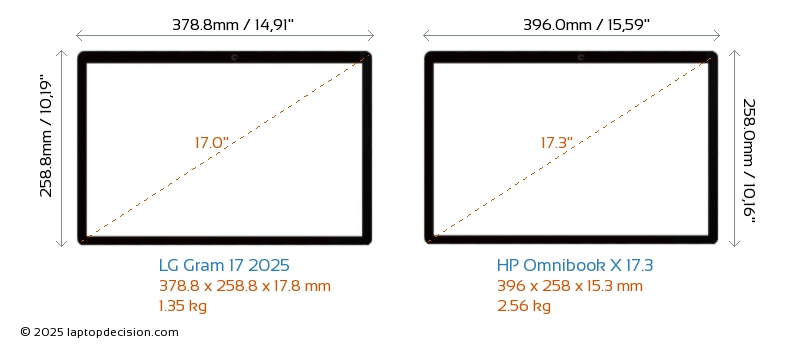 HDMIAmbos Gram 17 2025 y Omnibook X 17.3 cuentan con un puerto HDMI (1x HDMI 2.1) para conectar a monitores externos.