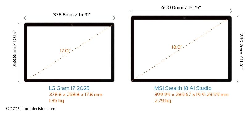 HDMIAmbos Gram 17 2025 y Stealth 18 AI Studio cuentan con un puerto HDMI (1x HDMI 2.1) para conectar a monitores externos.